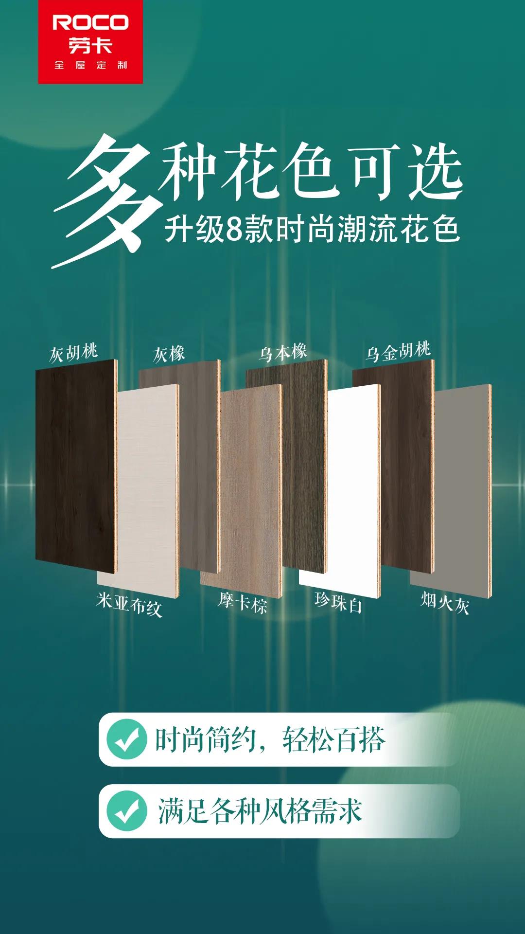 尊龙凯时z6com提供8种5A实木多层板花色供顾客选择,满足各种风格需求。